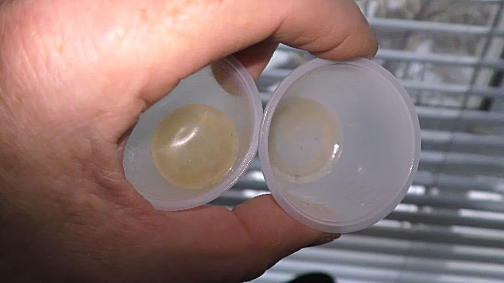 So, here I have two frozen Grindal worms pellets with different densities.