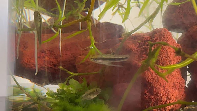 A half inch Least Killifish males are vigorous fighters devoting their lives to follow the female.
