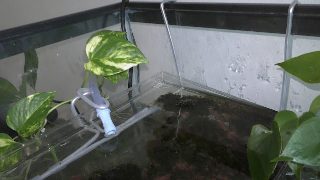 I put land moss on the platform to serve as food and a medium for culturing land critters as well.